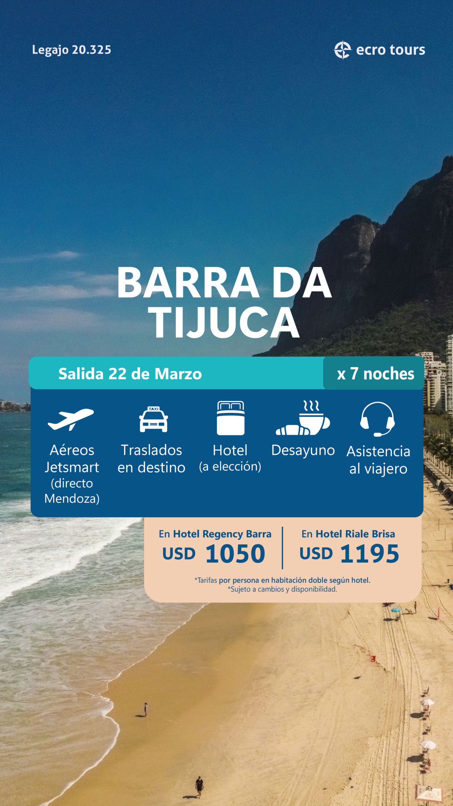 - Las mismas están sujetas a cambios y disponibilidad hasta el momento de la reserva.