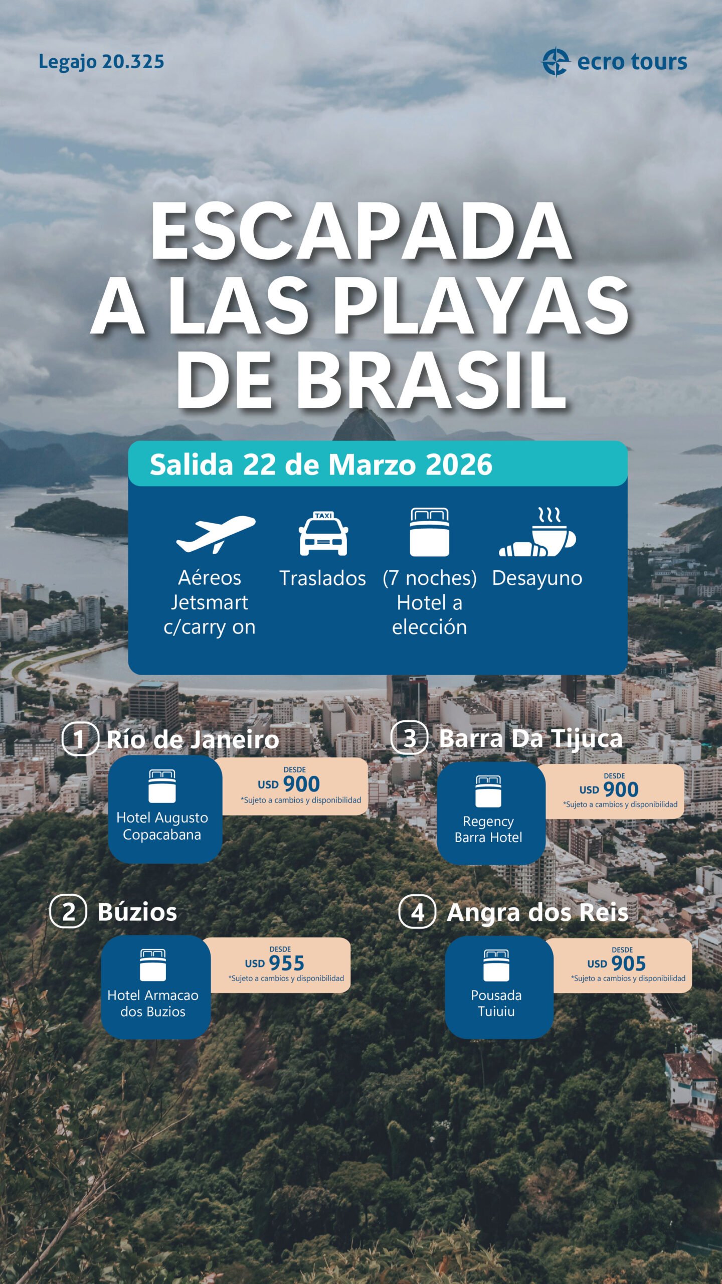 AEREOS por JETSMART directo MENDOZA – RIO DE JANERIO (con CARRY-ON)