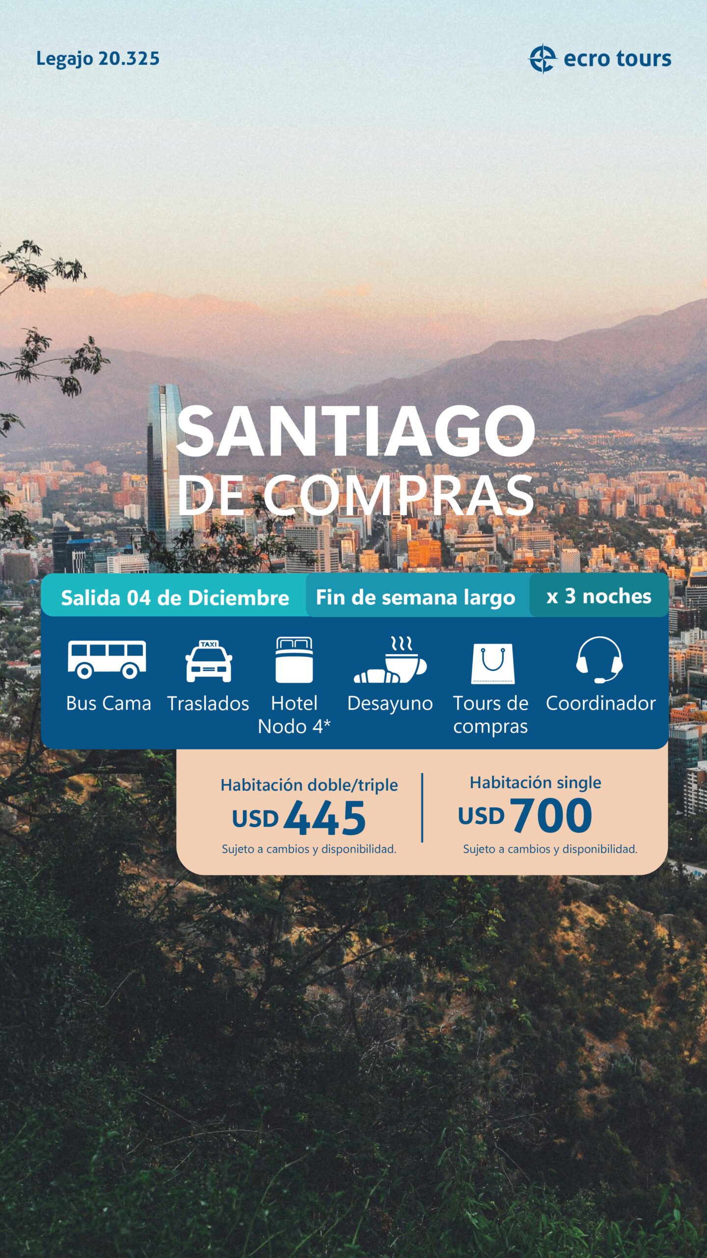 - REGRESO: 08 de diciembre 22:00 hs desde Santiago de Chile